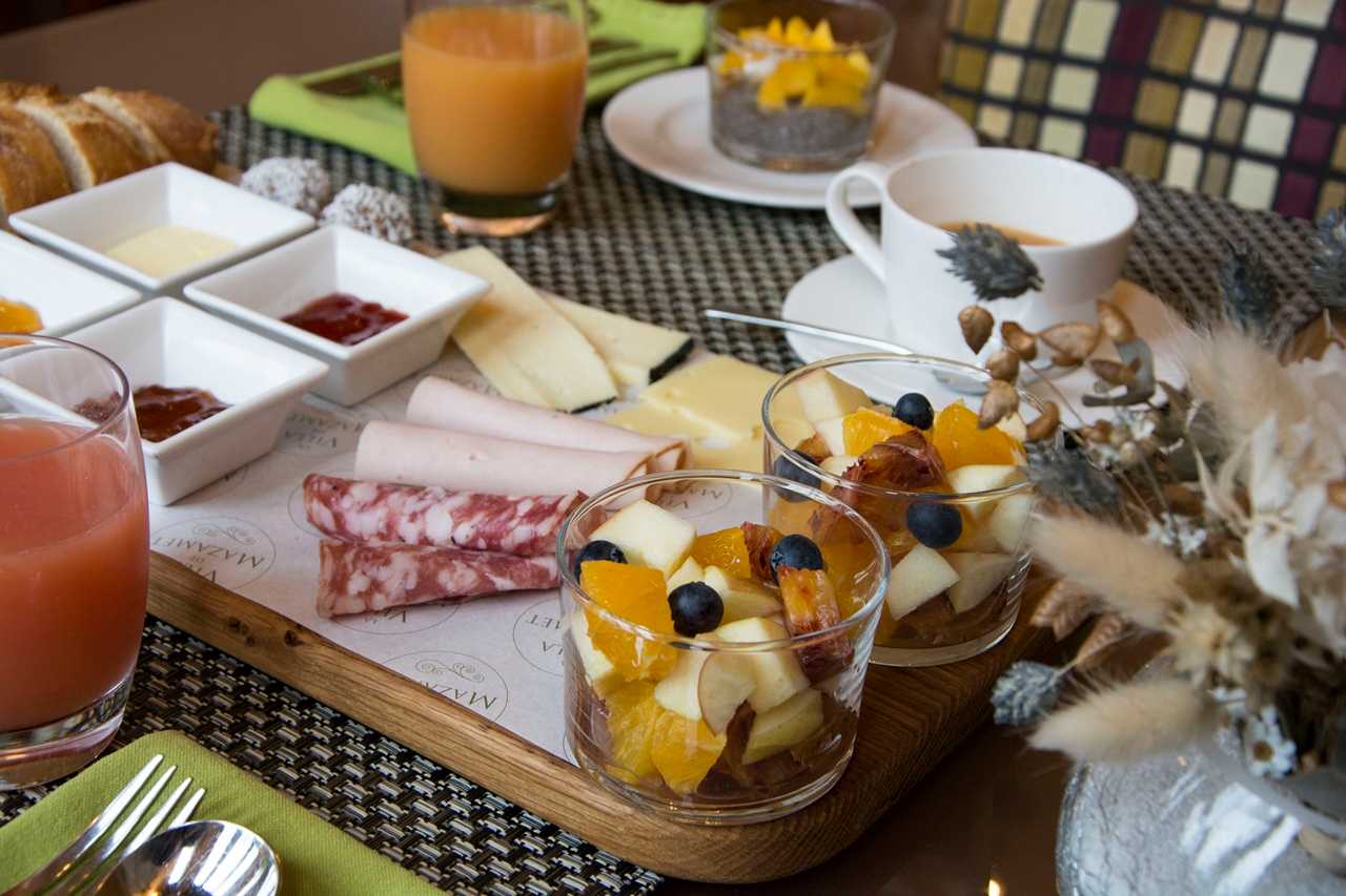 - Fruit juices: orange, pink grapefruit or apple