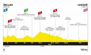 Dans l’Aveyron et le Tarn où l’on ne connaît pas réellement le « plat » avec trois côtes à franchir, les routes ne sont jamais de tout repos. Hormis le profil vallonné avant la traversée de Castres, les plans des équipes de sprinteurs pourraient aussi être perturbés par le vent qui peut souffler dans la région.